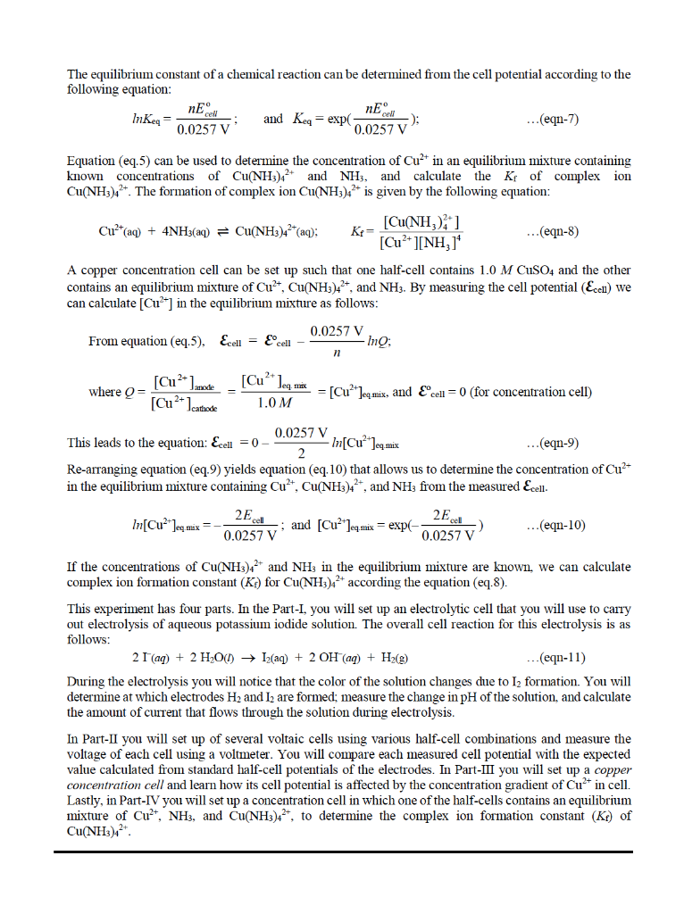 Experiment B9 Electrochemical Cells Purpose In This Chegg Com